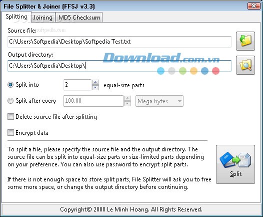 Các file đã được chia nhỏ có thể được ghép lại hoàn chỉnh mà không cần đến sự trợ giúp của chương trình này.