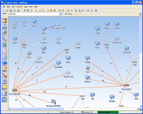 LANState trực quan hóa cấu trúc hệ thống và tình trạng hoạt động của các thiết bị được giám sát theo thời gian thực.