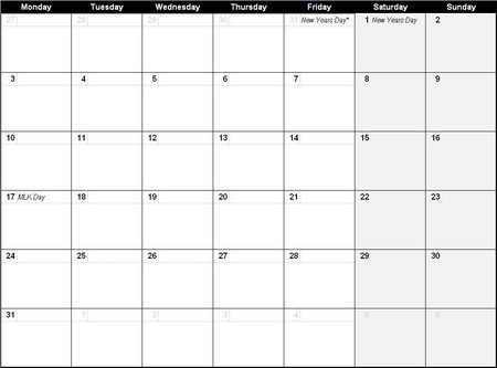 Trong số đó, mẫu lịch "2011 Monthly (Mon-Sun)" là một lựa chọn lý tưởng cho người dùng Excel phiên bản 2007 trở lên. Mẫu lịch này sở hữu giao diện trực quan, đơn giản, được thiết kế theo tuần bắt đầu từ thứ Hai đến Chủ Nhật.