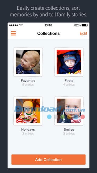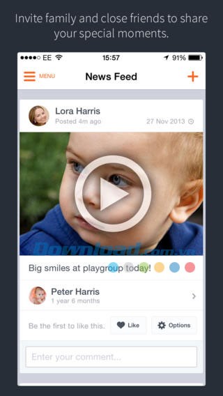 Ứng dụng là một album ảnh gia đình trực tuyến tuyệt vời, nơi bạn có thể biết con cái bao nhiêu tuổi, chúng đã lớn lên như thế nào và chia sẻ những cảm xúc riêng tư mà không bị ảnh hưởng bởi các mạng xã hội khác.