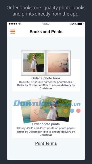Biến album ảnh hoặc các bức ảnh đơn lẻ thành một sách ảnh thực hoặc album ảnh in ấn đẹp mắt một cách nhanh chóng. Bạn cũng có thể tạo một cuốn nhật ký ảnh tùy chỉnh từ những bức ảnh yêu thích.