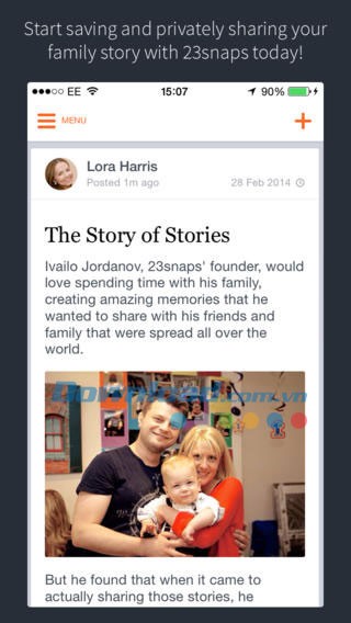 23snaps for iOS là phương tiện lý tưởng để toàn bộ các thành viên trong gia đình có thể theo dõi sự phát triển của trẻ và chia sẻ những bức ảnh gia đình đầy ý nghĩa.