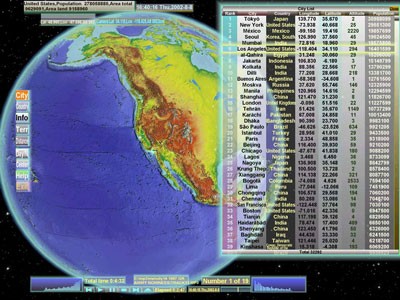 Phần mềm 3D World Map cung cấp các thông số chi tiết về 269 quốc gia, bao gồm kinh tuyến, vĩ tuyến, độ cao, diện tích và dân số. Bên cạnh đó, phần mềm cũng cung cấp thông tin về hơn 3.000 thành phố trên toàn thế giới.