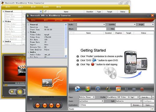 3herosoft DVD to BlackBerry Suite là một giải pháp phần mềm được thiết kế chuyên dụng, giúp người dùng có thể xem các đĩa DVD và file video yêu thích trên các thiết bị BlackBerry của mình.