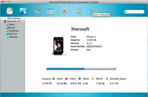 3herosoft iPhone Call List to Computer Transfer for Mac tương thích với nhiều thiết bị Apple khác nhau, bao gồm iPad, iPad 2, iPhone 3G, iPhone 3GS, iPhone 4, iPod classic, iPod nano, iPod nano 5G, iPod nano 6G, iPod touch và iPod touch 4.