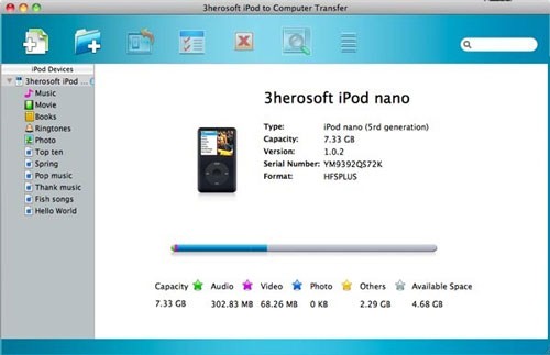 3herosoft iPod to Computer Transfer for Mac được xem là lựa chọn hàng đầu cho việc truyền tải dữ liệu từ thiết bị iPod sang máy tính Mac. Phần mềm này cho phép người dùng sao chép nhạc, phim, hình ảnh, sách điện tử ePud, file PDF, audiobook, các bản ghi âm giọng nói từ iPod sang máy tính Mac một cách dễ dàng.