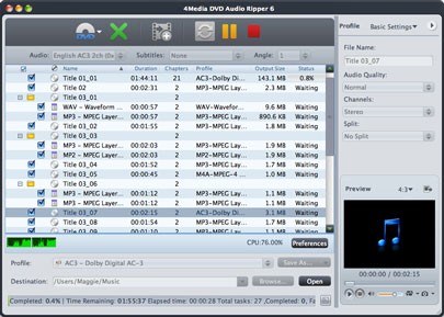 4Media DVD Audio Ripper for Mac là công cụ hữu ích, cho phép trích xuất âm thanh từ đĩa DVD sang nhiều định dạng audio thông dụng với chất lượng âm thanh vượt trội.