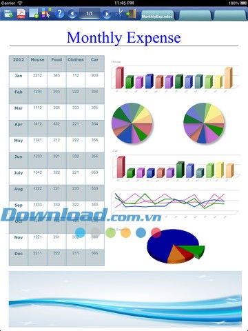 AboveNote Lite for iPad cho phép thiết kế tài liệu bằng cách tạo bảng tính, trình bày dữ liệu bằng biểu đồ, chèn hình ảnh, chữ viết và hình vẽ tự do.