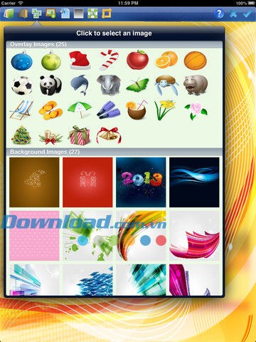 Ứng dụng được trang bị một bộ sưu tập phong phú các hình nền và biểu tượng chồng hình.