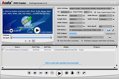 Acala DVD Creator là phần mềm chuyên dụng, cho phép bạn chuyển đổi các định dạng video phổ biến như AVI, DivX, Xvid, MPEG, MP4 và MOV sang định dạng DVD. Đồng thời, ứng dụng này còn hỗ trợ ghi trực tiếp các tập tin video từ ổ cứng lên đĩa DVD.