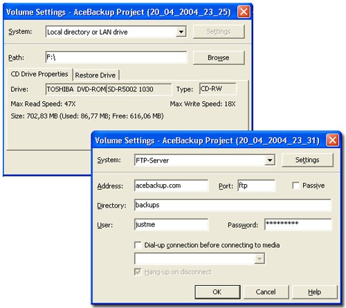 Acebackup là một giải pháp sao lưu mạnh mẽ và thân thiện với người dùng. Chỉ với vài thao tác đơn giản, bạn có thể sao lưu dữ liệu lên bất kỳ thiết bị lưu trữ nào, bao gồm CD, DVD, máy chủ FTP, đĩa mềm, ổ đĩa chia sẻ,...