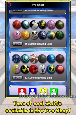 - Lựa chọn từ 36 loại bóng bowling được tùy chỉnh theo sở thích.
