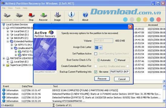 Trên đây là hướng dẫn chi tiết về chương trình Active Partition Recovery. Bạn có thể tự tìm hiểu thêm về các tính năng khác như tạo file image cho đĩa hoặc partition, fix MBR.