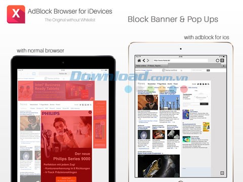 Dù trình duyệt Safari trên các thiết bị iOS không tương thích với các tiện ích chặn quảng cáo hoặc tiện ích chặn quảng cáo của bên thứ ba, người dùng iPhone, iPad và iPod Touch vẫn có thể trải nghiệm duyệt web không bị làm phiền nhờ ứng dụng AdBlock Browser for iOS.