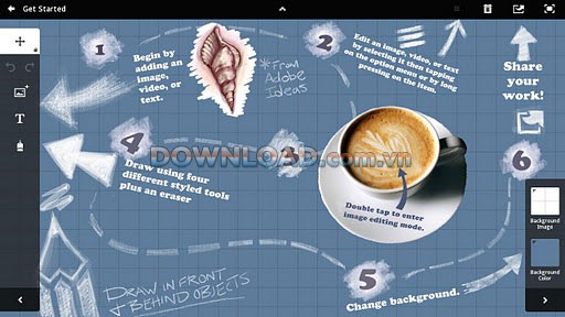 Ứng dụng cho phép bạn kết hợp nhiều loại nội dung khác nhau, bao gồm ảnh, hình vẽ, văn bản và các file tài liệu, thông qua việc lựa chọn các thành phần từ Adobe Creative Suite trong một bảng moodboard trực quan.