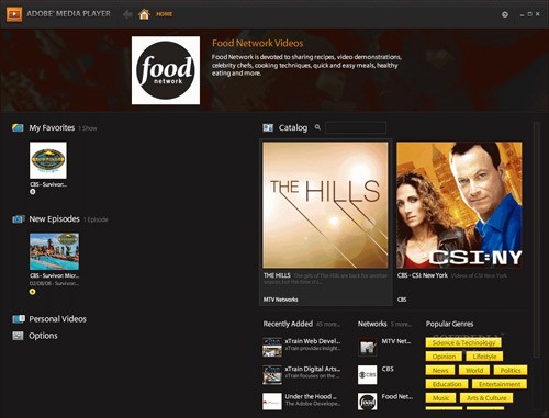 Adobe Media Player 1.8, được xây dựng trên nền tảng Adobe AIR (Adobe Integrated Runtime), là một ứng dụng đa năng, có khả năng hoạt động cả trực tuyến và ngoại tuyến. Ứng dụng này cho phép người dùng tiếp cận các chương trình Video Webcast từ nhiều đối tác lớn như CBS, PBS, MTV Networks, Universal Music Group, CondeNet và Scripps Networks…