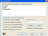 Bạn cũng có thể thiết lập mật khẩu cho chương trình. Trong hộp thoại Security Options, nhấp vào Change trong mục Access password, nhập mật khẩu hai lần và nhấn OK. Một hộp thoại thông báo sẽ xuất hiện, nhấp Apply để các thay đổi có hiệu lực. Từ thời điểm này, người dùng vẫn có thể thêm hoặc xóa các biểu tượng trên Desktop. Tuy nhiên, hộp thoại Display Properties, nơi bạn thường thay đổi ảnh nền Desktop, cài đặt Screen Saver và độ phân giải màn hình, sẽ bị vô hiệu hóa.