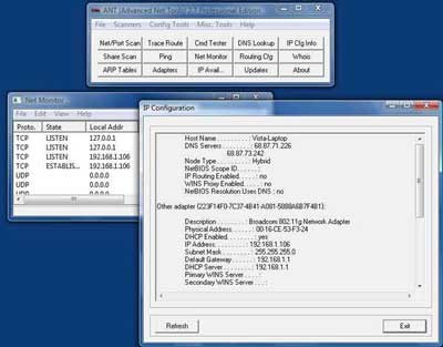 Công cụ còn hỗ trợ tra cứu DNS nâng cao, cho phép bạn xem các adapter mạng đã kết nối với máy tính trong mạng.