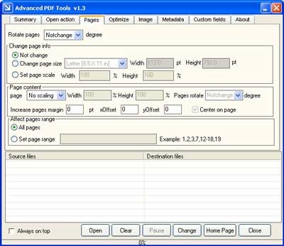 Bên cạnh đó, Advanced PDF Tools còn cung cấp khả năng thiết lập các thuộc tính quan trọng như thao tác mở file, bố cục trang, kích thước trang, lề trang, định hướng trang và metadata.