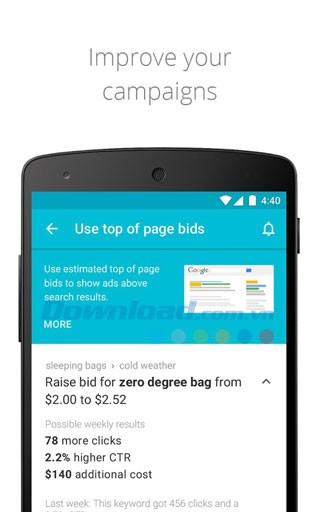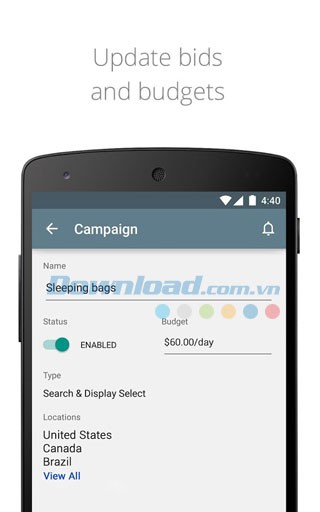 Ứng dụng AdWords cho Android mang đến khả năng kiểm soát toàn diện các chiến dịch quảng cáo ngay trên thiết bị di động.