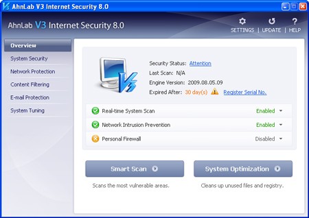 AhnLab V3 Internet Security là một giải pháp bảo mật được tích hợp, cung cấp khả năng phòng thủ trước những mối đe dọa an ninh mạng mới nhất. Giải pháp này bao gồm các engine mạnh mẽ chống virus và phần mềm gián điệp, đồng thời hỗ trợ quản lý các trang web, bảo mật email và bảo vệ máy tính cá nhân.