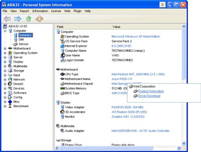 AIDA32 là một tiện ích mạnh mẽ, cung cấp đầy đủ thông tin về cấu hình phần cứng và phần mềm của máy tính. Bên cạnh những thông tin cơ bản như hệ điều hành, dung lượng bộ nhớ, bạn còn có thể xem chi tiết về loại mainboard đang sử dụng, cách thức hoạt động với RAM, thông tin về chipset.