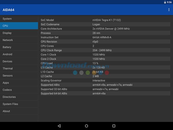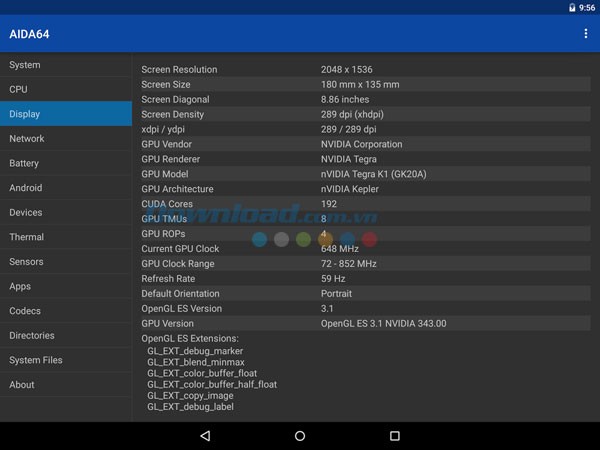 AIDA64 for Android sẽ cung cấp cho người dùng thông tin về phần cứng của thiết bị