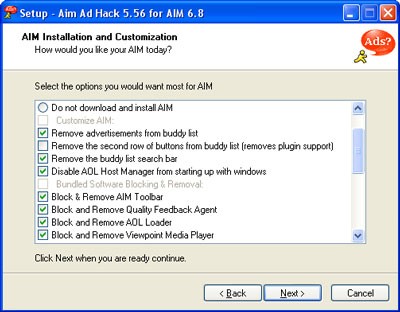 Sau khi hoàn tất các thiết lập, nhấn Next để bắt đầu quá trình cài đặt. Từ nay trở đi, bạn sẽ không còn phải lo lắng về những quảng cáo gây khó chịu của AIM nữa, chúng sẽ được loại bỏ hoàn toàn.