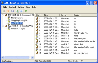 AIM Monitor Sniffer là công cụ mạng hữu ích, được phát triển nhằm mục đích theo dõi, thu thập và chặn các cuộc trò chuyện qua giao thức AIM (AOL Instant Messenger).