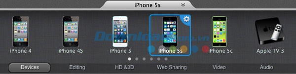 Nếu bạn muốn chuyển đổi DVD để xem trên các thiết bị di động, hãy chọn biểu tượng của thiết bị đó để chương trình tự động tối ưu hóa cài đặt đầu ra.