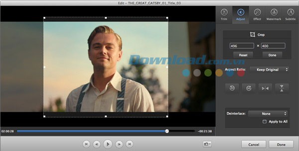 Trước khi chuyển đổi, bạn có thể thực hiện các chỉnh sửa và tùy chỉnh khác nhau cho phim DVD. Nhấn nút "" ở phía bên phải của mỗi video clip để mở cửa sổ chỉnh sửa video.