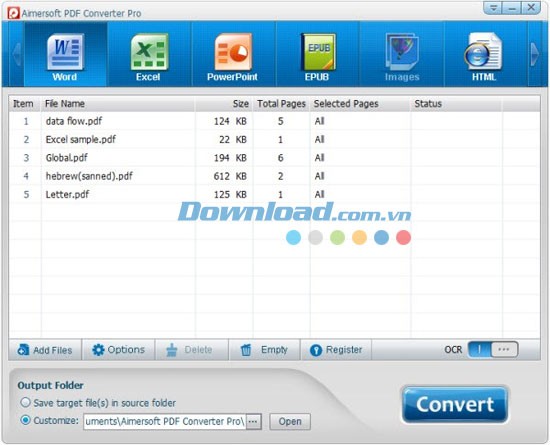 Sau khi hoàn thành các bước trên, hãy chọn định dạng đầu ra và nhấn nút Convert. Aimersoft PDF Converter Pro sẽ kích hoạt OCR và chuyển đổi file PDF được quét sang định dạng văn bản bạn đã chọn.