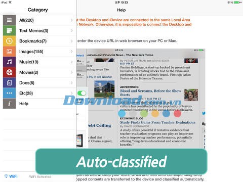 Các tệp tin được chuyển sẽ được tự động phân loại vào 7 danh mục khác nhau dựa trên loại tệp. Người dùng có thể xem hoặc phát trực tiếp các tệp này ngay trong ứng dụng Air Transfer for iOS.