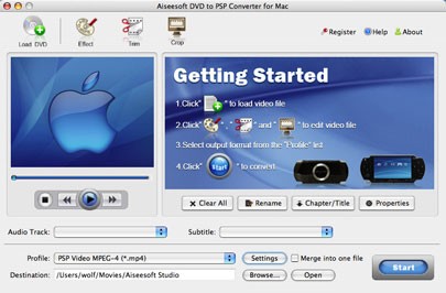 Aiseesoft DVD to PSP Converter for Mac là một ứng dụng chuyên dụng, cho phép người dùng chuyển đổi đĩa DVD sang các định dạng tương thích với PSP MP4, PS3 MP4, PSP H.264 (.mp4) và PS3 AVI. Phần mềm này còn có khả năng trích xuất các track âm thanh từ DVD sang các định dạng MP3, AAC PSP trực tiếp trên hệ điều hành macOS. Hơn nữa, ứng dụng này tương thích với nhiều thiết bị di động khác.