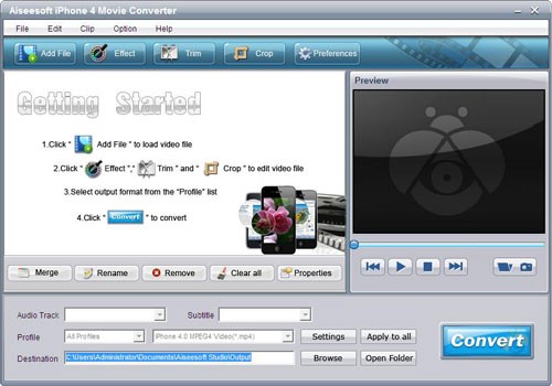 Aiseesoft iPhone 4 Movie Converter không chỉ là công cụ chuyển đổi đơn thuần, mà còn là một ứng dụng iPhone 4 chất lượng cao với nhiều chức năng chỉnh sửa video mạnh mẽ.