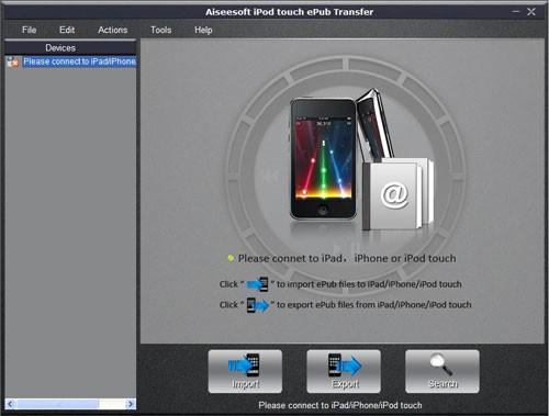 Phần mềm Aiseesoft iPod touch ePub Transfer cho phép chuyển đổi dữ liệu ePub sang thiết bị iPod touch một cách trực tiếp và thuận tiện.