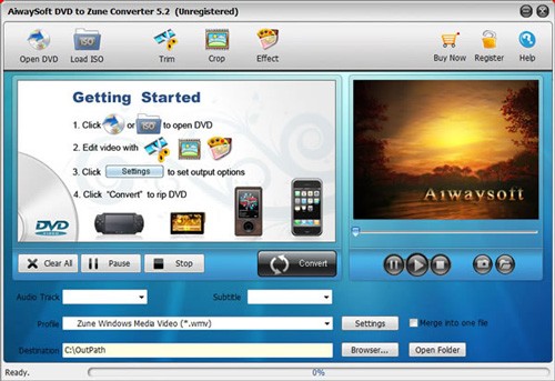 Aiwaysoft DVD to Zune converter là một giải pháp phần mềm được thiết kế để chuyển đổi DVD sang các định dạng tương thích với thiết bị Zune một cách nhanh chóng và đơn giản. Phần mềm này hỗ trợ chuyển đổi DVD sang MP4, MPEG-4 và WMV, đồng thời có khả năng rip audio DVD sang MP3, WMA và M4A.