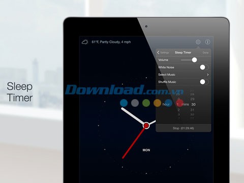 Đánh thức bạn bằng những âm thanh du dương và dễ chịu.
