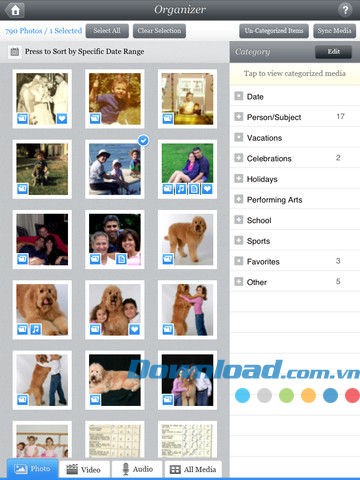 Hãy khám phá một ứng dụng tuyệt vời để điều hành toàn bộ dữ liệu đa phương tiện của bạn bằng phương pháp thông minh, lấy cảm hứng từ sổ lưu niệm – Album Genie for iPad. Lần đầu tiên trên iPad, bạn có thể sắp xếp ảnh, video và các dữ liệu riêng tư khác thông qua các danh mục tùy chỉnh. Chỉ cần một chạm, Album Genie sẽ tự động tạo album cho bạn.