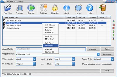 Allok MOV Converter là một phần mềm hữu ích, cung cấp khả năng chuyển đổi video từ định dạng MOV sang nhiều định dạng phổ biến khác như AVI, MPEG, WMV, DVD, VCD và SVCD.