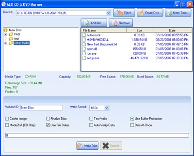 ALO CD & DVD Burner là một ứng dụng phần mềm tích hợp nhiều chức năng, cho phép người dùng ghi đĩa CD/DVD một cách hiệu quả và đơn giản. Phần mềm này được đánh giá cao nhờ giao diện thân thiện và khả năng tương thích rộng rãi.