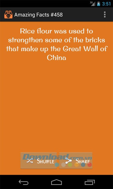 Với hơn 11000 thông tin thú vị và mới lạ được tổng hợp từ khắp nơi trên thế giới, được trình bày trên một giao diện đơn giản và hấp dẫn, Amazing Facts (11000+) for Android sẽ mang đến cho bạn những giờ phút giải trí thú vị và những khám phá bất ngờ.