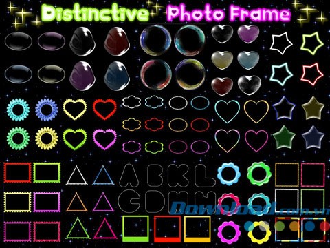 Ứng dụng sở hữu hơn 500 clip art đa dạng, được phân loại thành 15 nhóm: Pin, Clip, Sticker, String, Alphabet, Heart, Star, Balloon, Paper, Callout, Smiley, Baby, Birthday, Halloween, Xmas.