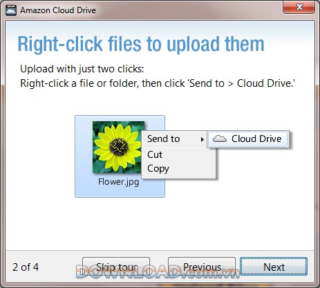 Người dùng có thể gửi file hoặc thư mục lên Amazon Cloud Drive bằng cách nhấp chuột phải.
