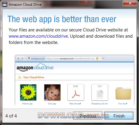Trước sự cạnh tranh từ Google Drive, Amazon đã chính thức giới thiệu ứng dụng cài đặt dành cho Cloud Drive, hỗ trợ cả hệ điều hành Windows và Mac. Ứng dụng này giúp người dùng dễ dàng truy cập và quản lý dữ liệu trên kho lưu trữ trực tuyến của Amazon.