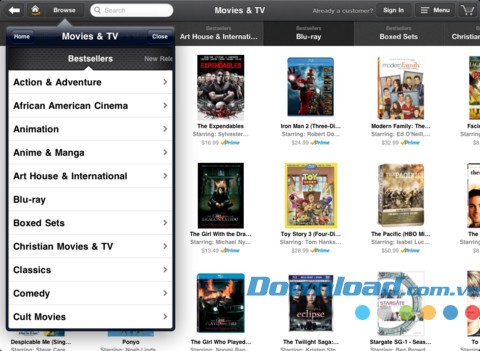 Ứng dụng Amazon Windowshop for iPad mở ra cơ hội cho người dùng khám phá thêm nhiều lựa chọn sản phẩm trong từng danh mục. Chỉ cần chạm vào cột tiêu đề của danh mục, các danh mục con sẽ hiện ra với hàng trăm sản phẩm liên quan.