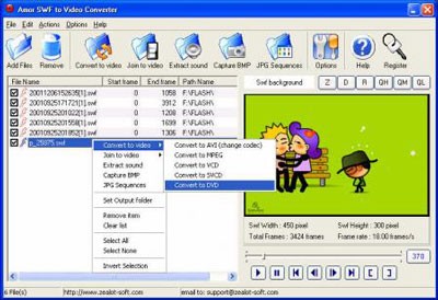 Phần mềm SWF To Video Converter của Amor có chức năng chính là chuyển đổi các file SWF sang các định dạng video thông dụng. Nhờ đó, người dùng có thể dễ dàng xem và chia sẻ những file nhạc flash mà không cần phải cài đặt Flash Player.