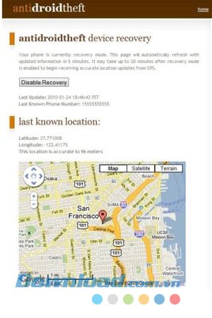 Tăng cường an ninh cho điện thoại di động của bạn trong trường hợp bị mất hoặc đánh cắp. Xác định vị trí thiết bị và thu thập hình ảnh từ xa thông qua trang web Anti Droid Theft: www.antidroidtheft.com.