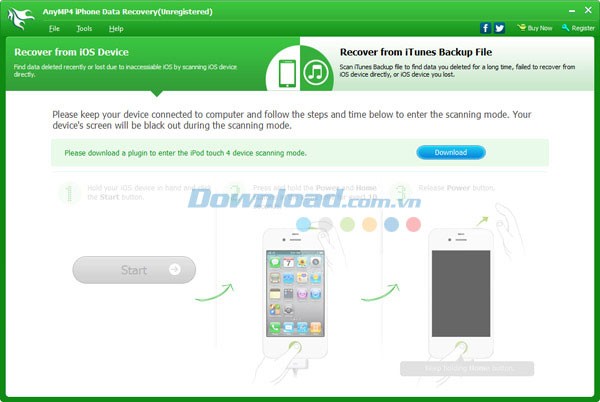 Đối với các thiết bị iPhone 4, iPhone 3GS, iPad 1 và iPod touch 4, bạn cần tải một plug-in. Plug-in này có thể được tải trực tiếp từ cửa sổ chương trình. Quá trình tải xuống diễn ra rất nhanh chóng.
