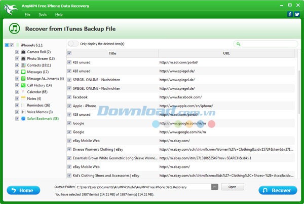 AnyMP4 iPhone Data Recovery có khả năng khôi phục mọi loại dữ liệu trên iPhone, iPad và iPod, bao gồm cả hình ảnh, video, bản ghi âm giọng nói và các tập tin văn bản như danh bạ, tin nhắn SMS, lịch sử cuộc gọi, ghi chú và bookmark trong Safari .